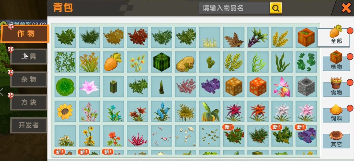 作物一栏更新了些植物,比如桃花、胡桃等,破坏他们即可获得相应的作物