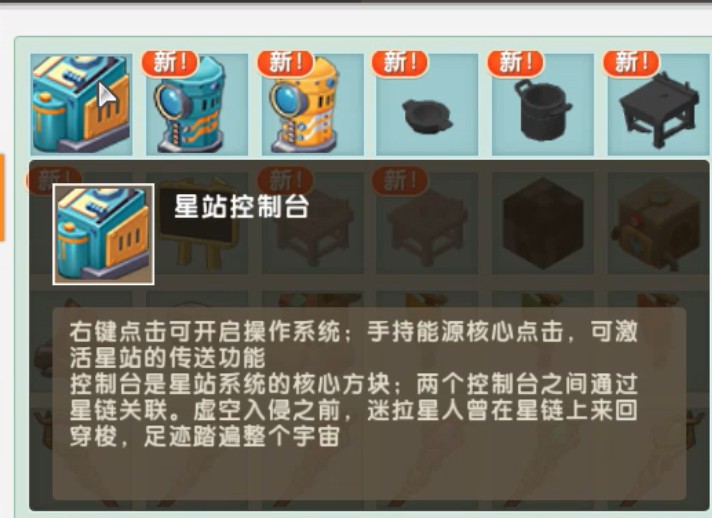 这三样东西使我们去往其他星球的关键!将控制台、传送舱摆放好后,再将核心放入控制台中,我们就能去往自己想要的星球啦(可以去的星球包括 迷拉星、烈焰星、萌眼星三个星球)!