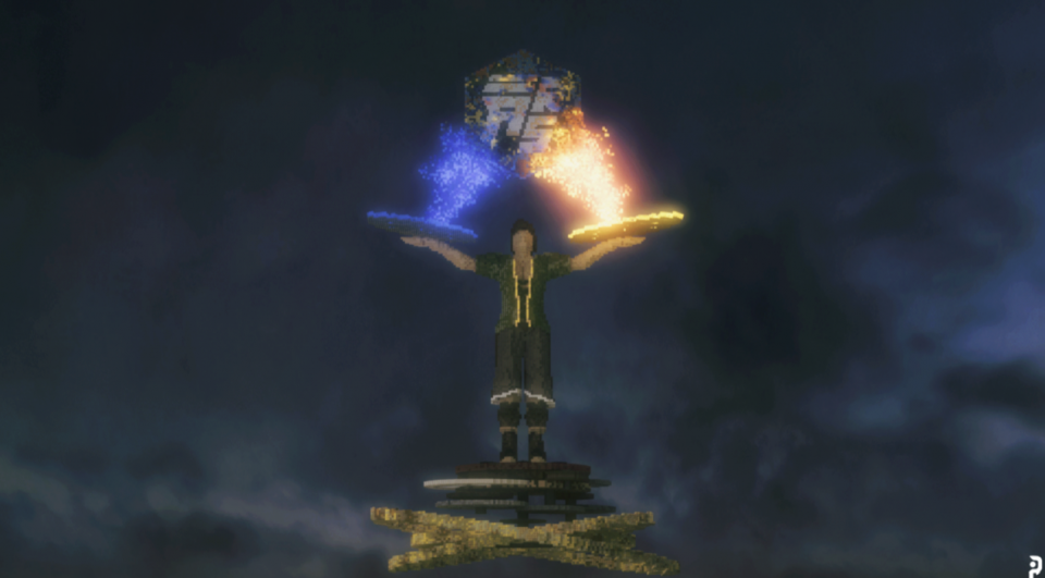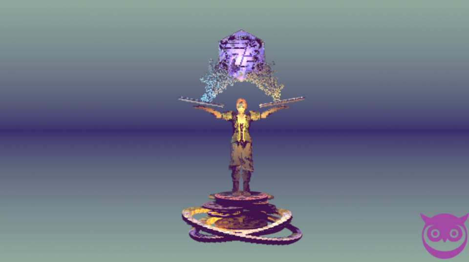 这个是Team Aresylous的第一个发表作品,一个站在圆台上的人高举双手,然后两股神秘的力量就变出来了一个“秀”字,啊不对,是他们的logo。