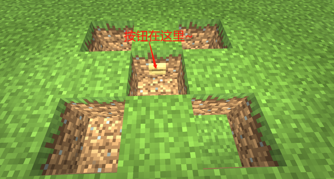 然后在中间的坑坑壁上放置一个按钮