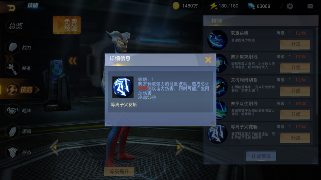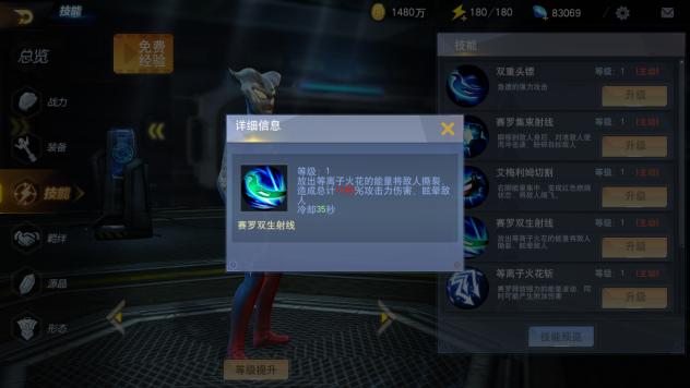 首先我们可以看到赛罗的各项属性并不是很高,但是这并不代表赛罗很弱,赛罗是全属性英雄,这说明他不会被任何其他属性的英雄所克制,从而影响输出,而赛罗的主要输出方式就是依靠他的技能。