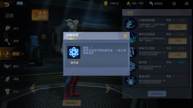 赛罗的被动技能是满月波,赛罗攻击敌人时附加满月波,一定几率眩晕目标。这是赛罗强大的主要原因,赛罗可以持续对敌人进行控制,只要攻击到敌人,就有几率让敌人进入眩晕状态,而赛罗的基础技能大多是多段打击,因此眩晕概率非常高。