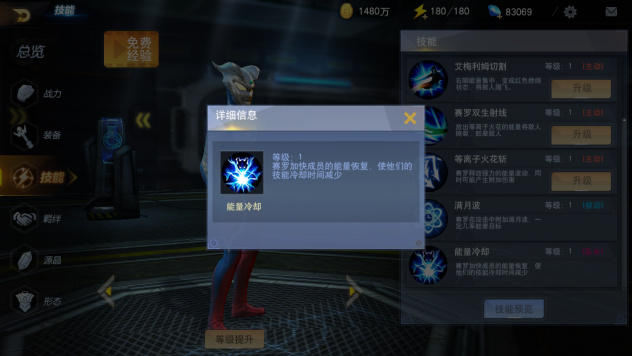 赛罗的队长技能是能量冷却,可以为出战人员减少技能冷却,这个技能配合赛罗的被动,简直是无敌的存在。