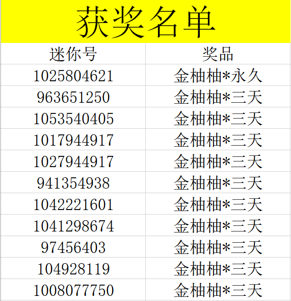 恭喜以上10位幸运小伙伴在本次活动中被抽中获得金柚柚皮肤!