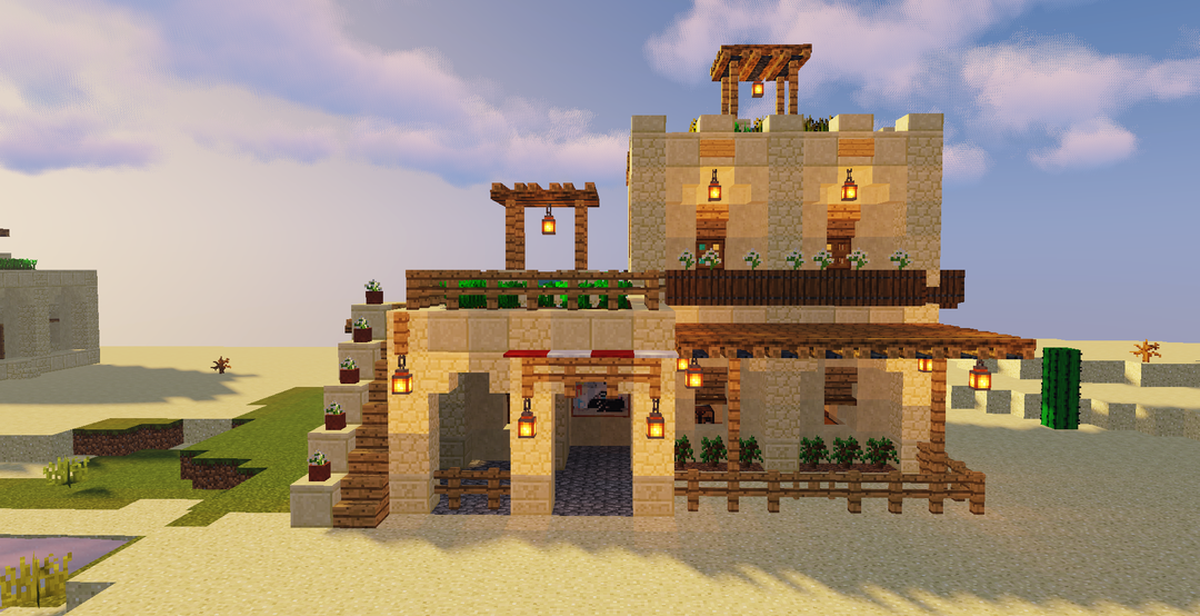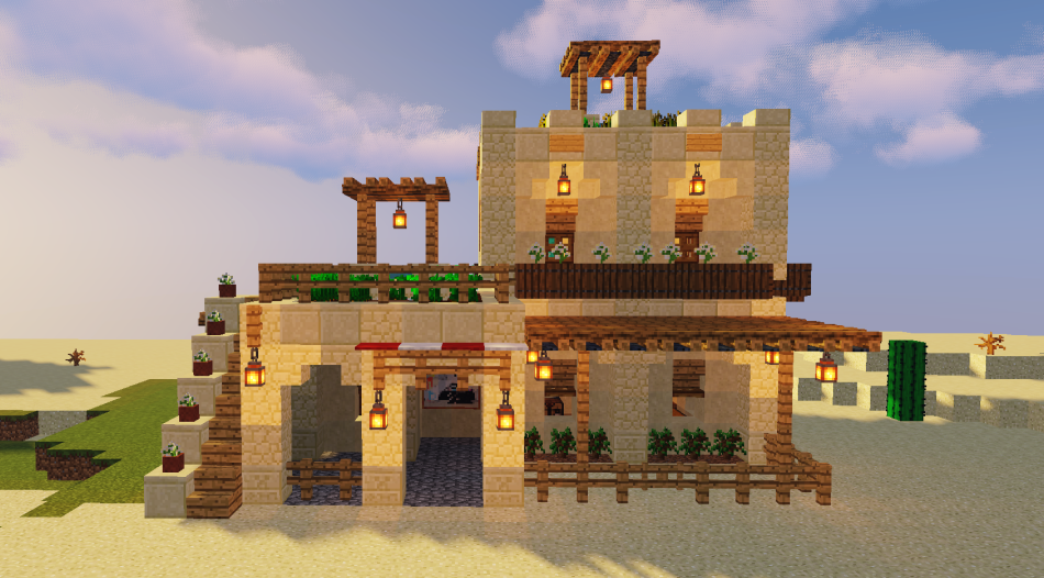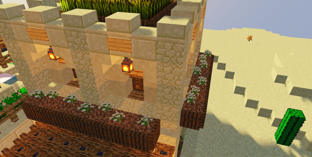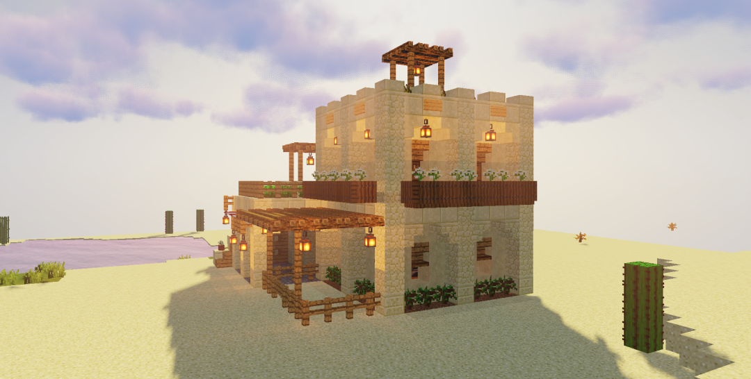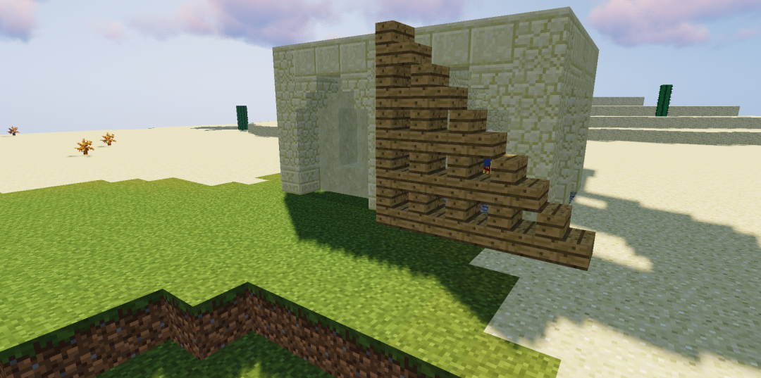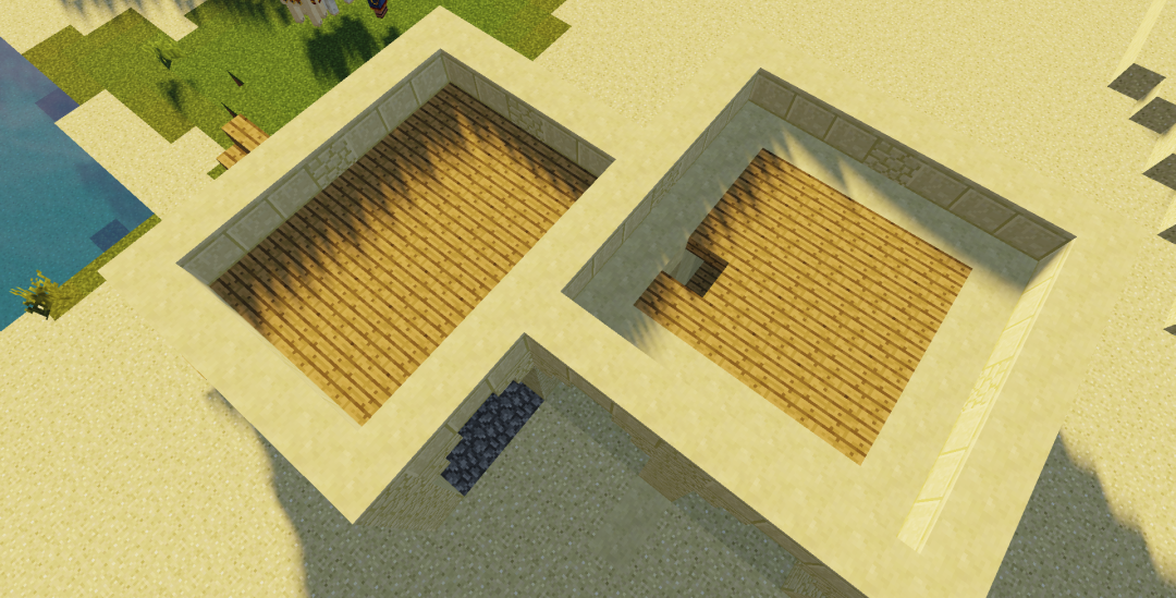 然后用橡木台阶给一层封顶