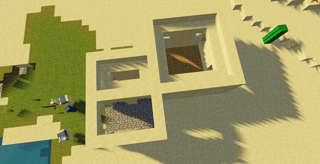 此时可以顺手用圆石和橡木木板铺好地板哦