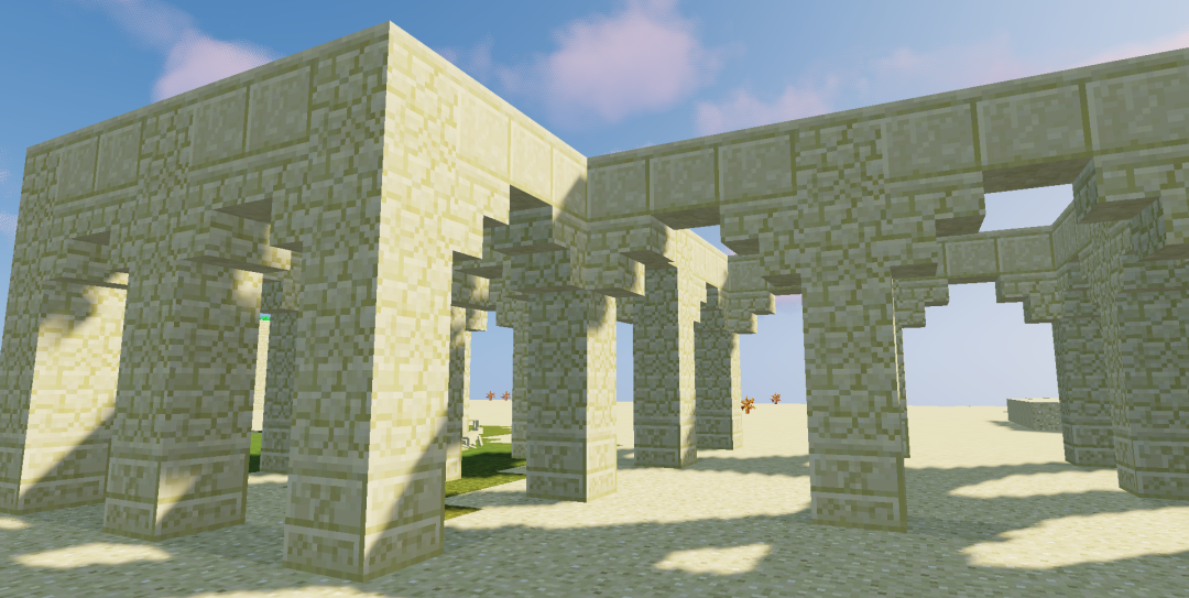 然后我们用切制砂岩连接柱顶