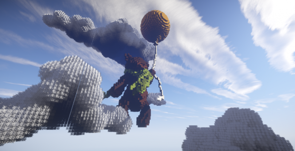 这就是各位冒险家理想中的气球上天姿势,只不过先拿玩具熊预演一下。感觉这个动力还挺足的,不过也可能借助了旁边云朵的上升力。