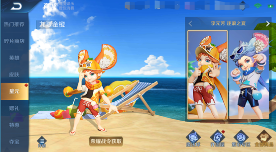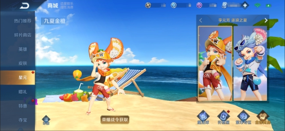 S21进阶版荣耀战令奖励——李元芳-九夏金橙星元皮肤一套,提升等级即可获得哦,本次3个部件为战令首发,其余部件后续将上架游戏商城,详情请查看官方公告~