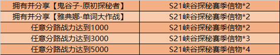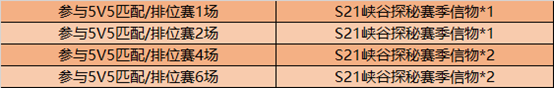 通过荣耀之路活动累计可获得S21峡谷探秘赛季信物*6。
