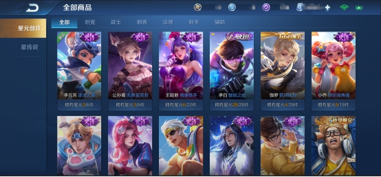 (3)优化【全部商品】查看时,优先按照皮肤进行选择,可查看对应皮肤的星元搭配。