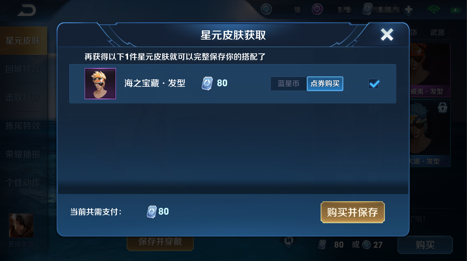 例如:部分头部的星元部件,原本的价格是27蓝币或80点券,选择蓝币购买,若当前没有蓝币,直接用点券补足将使用81点券。此时召唤师们可直接选择点券购买,将依旧使用80点券完成。