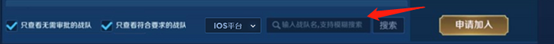 4) 召唤师可以加入与自身的平台(安卓或IOS)不同的战队,即安卓的召唤师可以和IOS的朋友加入同一个战队了,可以通过精确搜索对应战队名字,并选择对应的平台从而得以加入相应战队,如下所示: