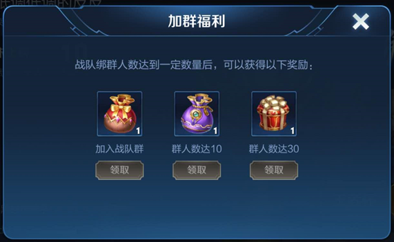 1) 新增了召唤师加入战队群后获得的福利,当召唤师加入战队群且战队群人数达到一定数量后,召唤师可获得对应的奖励;