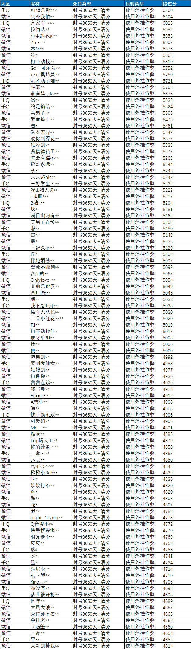 近期部分使用外挂违规特种兵名单: