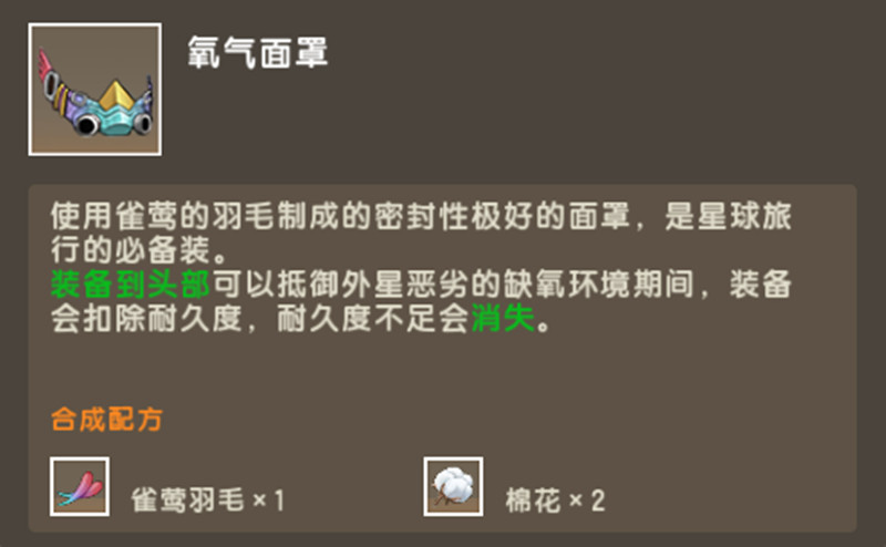 拿到烈焰断剑后踏上萌眼星,而冒险家们如果提前发现了空岛,可以在空岛上击败雀莺拿到雀莺羽毛,然后去制作氧气面罩来抵御外星恶劣的缺氧环境。