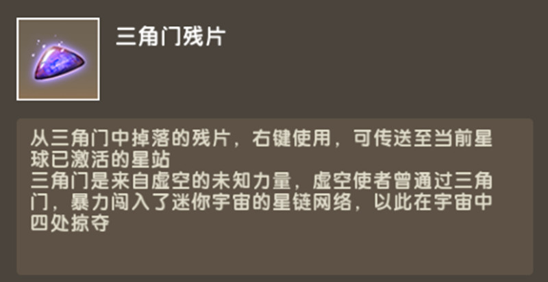 传说,三角门是来自虚空的未知力量,虚空使者曾通过三角门暴力闯入迷你宇宙的星链网络,以此在宇宙中四处掠夺。