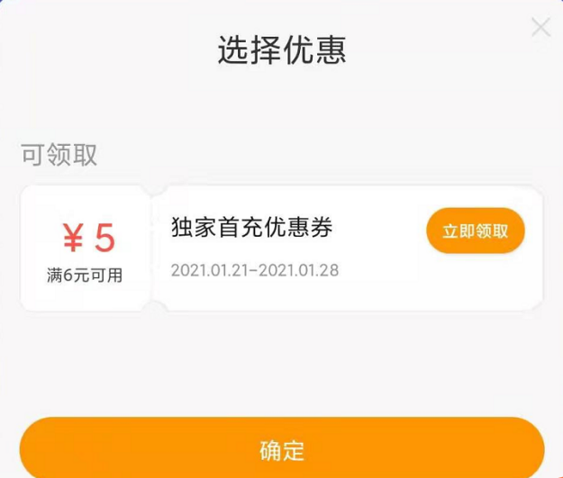 2、如果登录未能获取代金券,在充值界面也可领取(如例图所示)