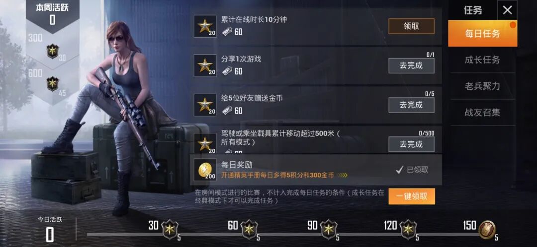 特种兵们通过完成每日任务达到一定的活跃即可获取相对应的赛季手册积分,每日最多可获得20积分。