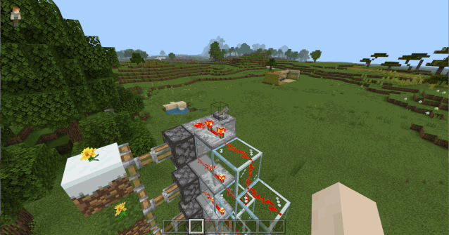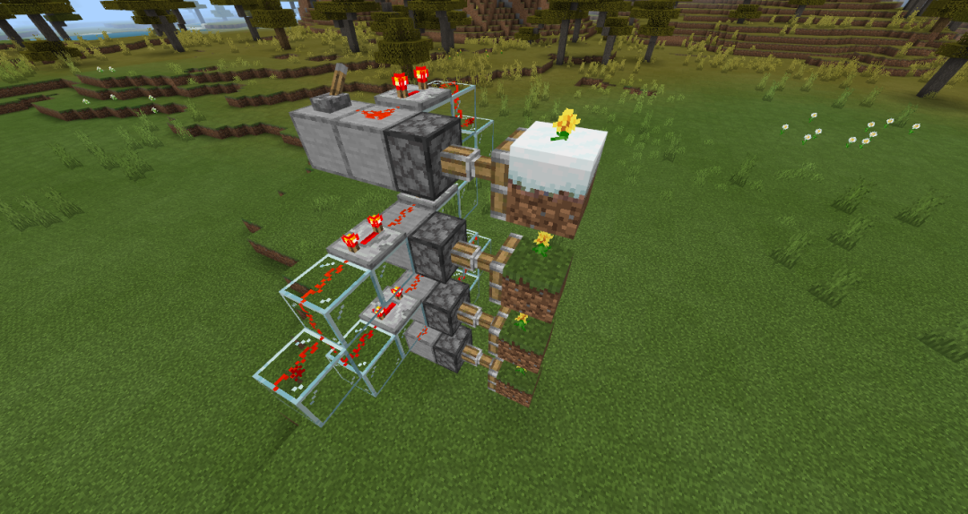 然后在普通方块的任意一侧放上粘性活塞