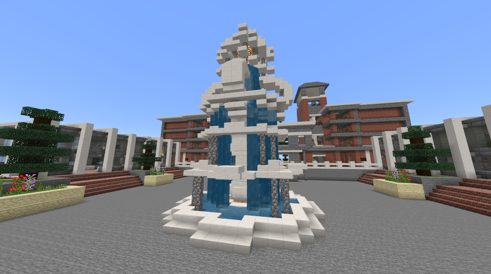 在喷泉的后面就是教学楼了