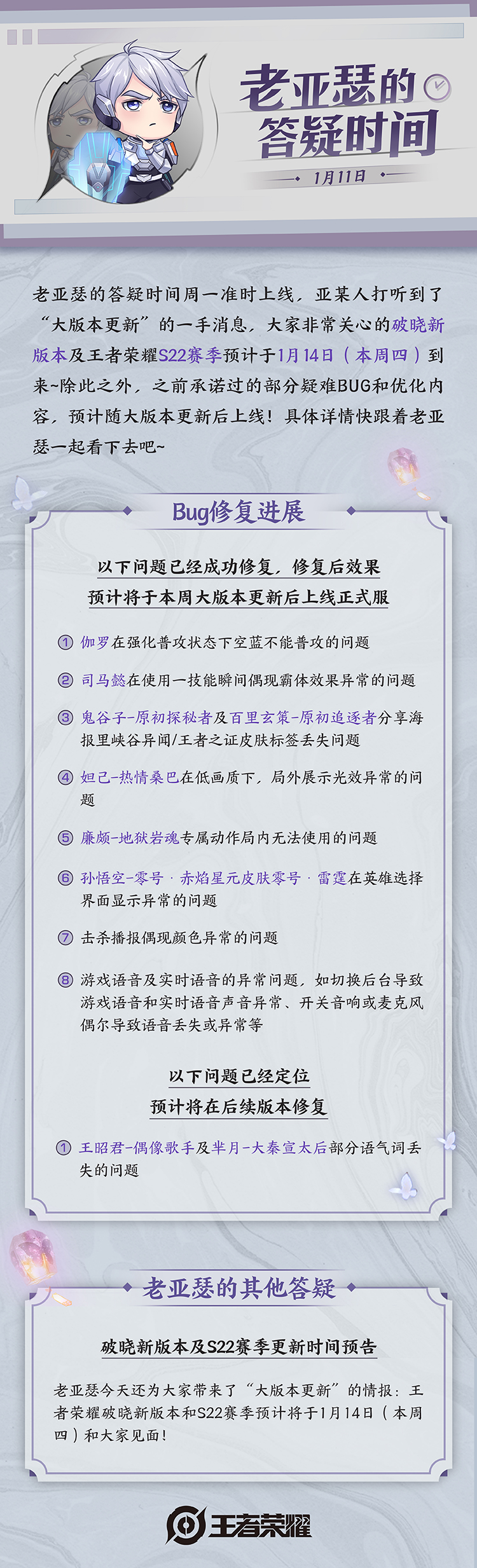 【答疑】破晓新版本及S22赛季预计于1月14日到来