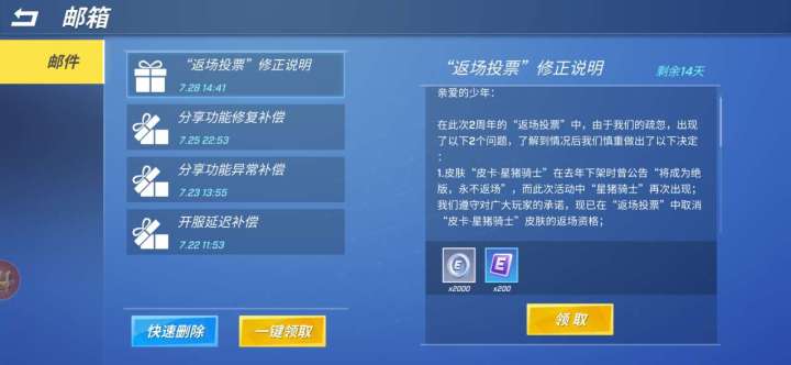 为此我们准备了白金币和点券,给予大家补偿!
