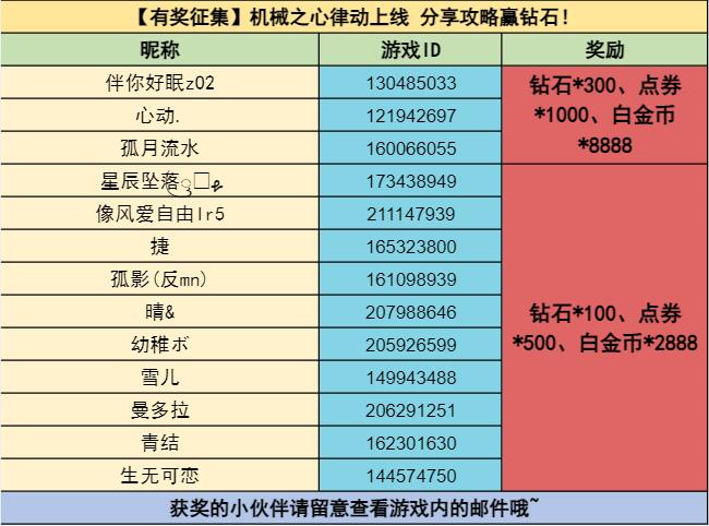 攻略高手(10名):钻石*100、白金币*2888、点券*500