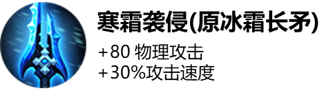 新效果将更加聚焦于降低攻速,而当目标攻速降低,目标的普攻频率会越来越低,当攻速降低到极致时,目标就无法普攻了(被缴械),同时为了更好地表达这一感受,冰霜长矛将更名为寒霜袭侵,以表达装备的特性。