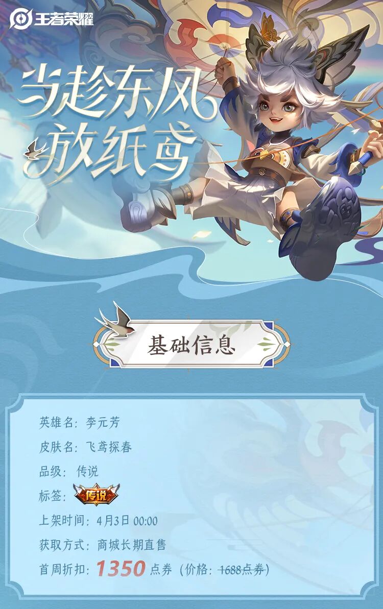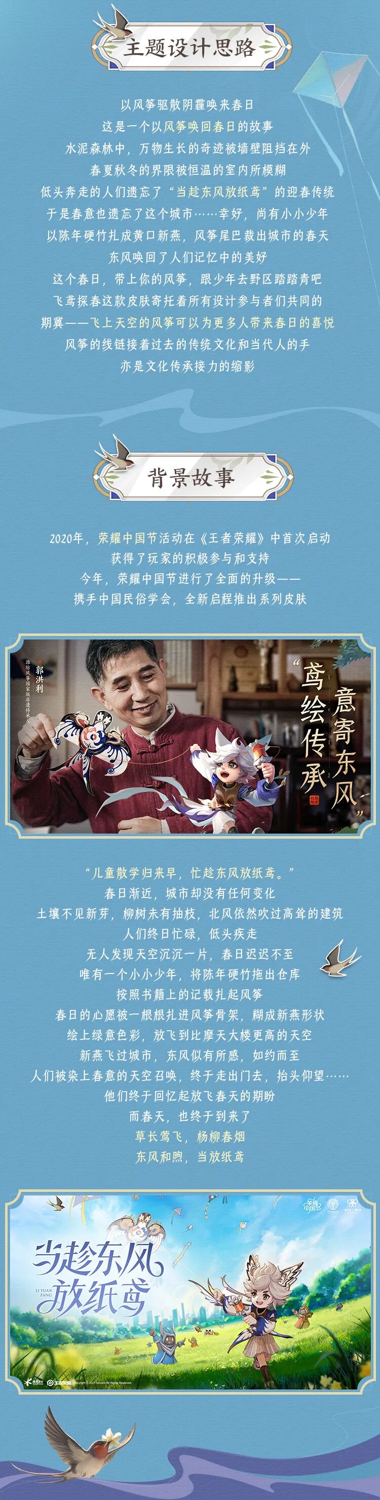 当趁东风放纸鸢,2021荣耀中国节系列首款皮肤来啦!当李元芳遇上潍坊风筝非遗大师,两者碰撞的联合设计又会出呈现怎样的魅力呢?