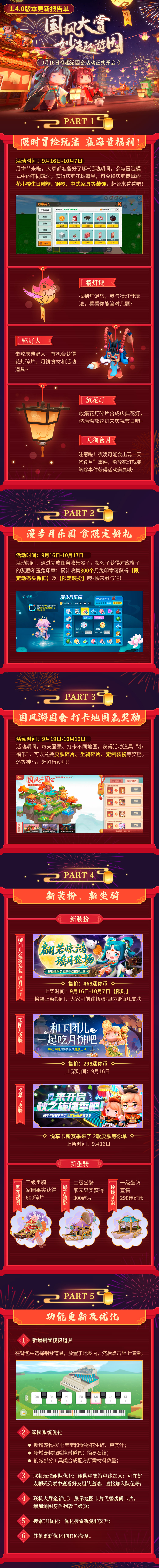 【更新报告单】1.4.0 国风大赏,妙趣游园,奇趣游园会活动正式开启!
