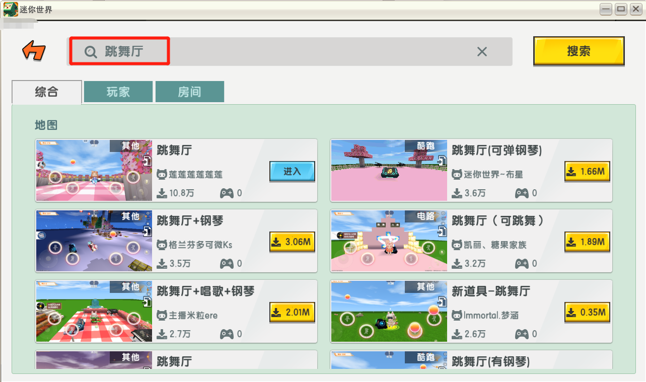现在登陆游戏,在迷你工坊搜索跳舞厅,选择你喜欢的地图,就能体验到边听歌边跳舞的乐趣!
