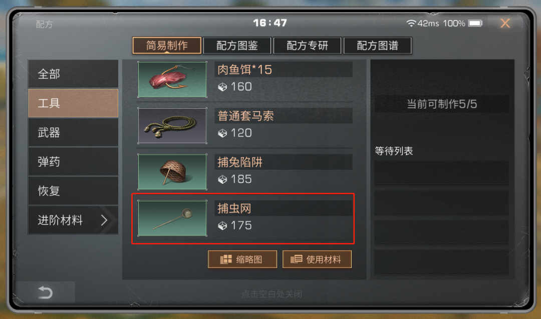 在随身配方——工具中可制作捕虫网