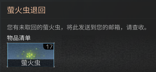 未消耗的萤火虫将会以邮件返还