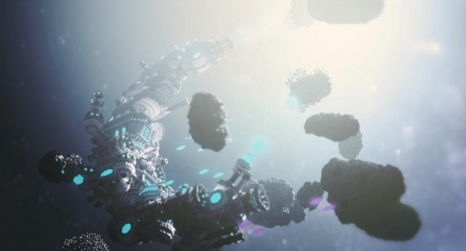抛去设定这个空间站的设计,真让人惊讶的是底部,细节丰富结构层次多,稍微离远一点完全看不出是用方块做出来的。