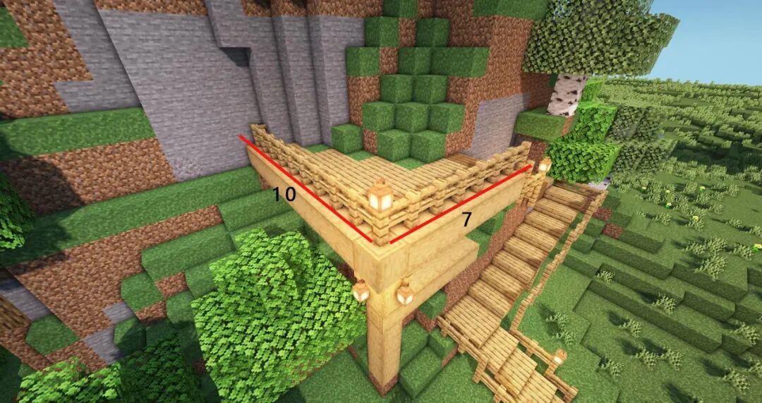 然后使用橡木原木、灯笼、藤蔓