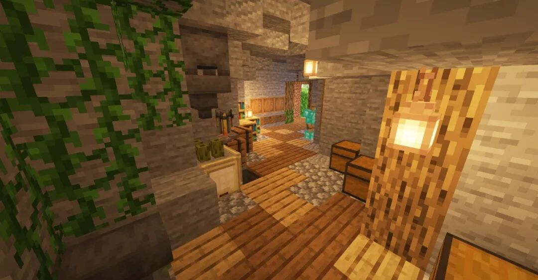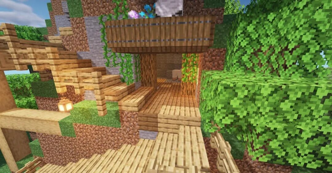再结合一些藤蔓、云杉木活板门