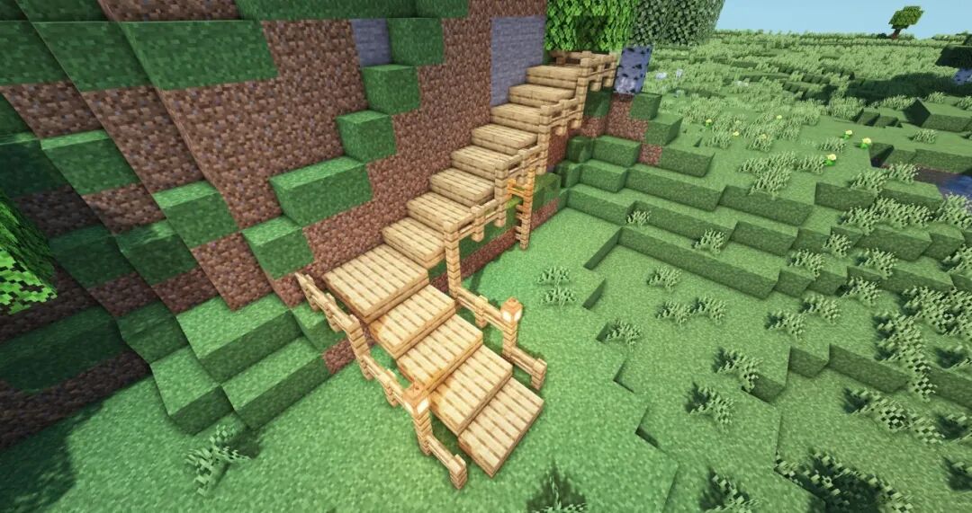 然后使用橡木栅栏和橡木台阶