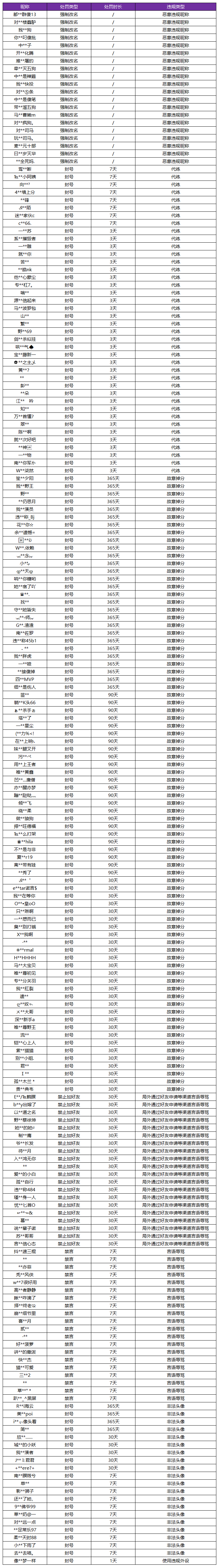 我们将这部分召唤师视其影响的程度,将会处以禁言、禁止上榜、禁止PVP、封号等惩罚。同时,针对于游戏内部分战队存在的“组织演员买分卖分”、“陪玩”、“代练”、“恶意狙击其他玩家”等系列恶意行为,我们将对这部分战队组织及恶意成员,视其影响的程度,将会处以禁言、战队全员禁言、禁止上榜、战队全员禁止上榜,禁止PVP、战队全员禁止PVP、封号、战队全员封号等惩罚。