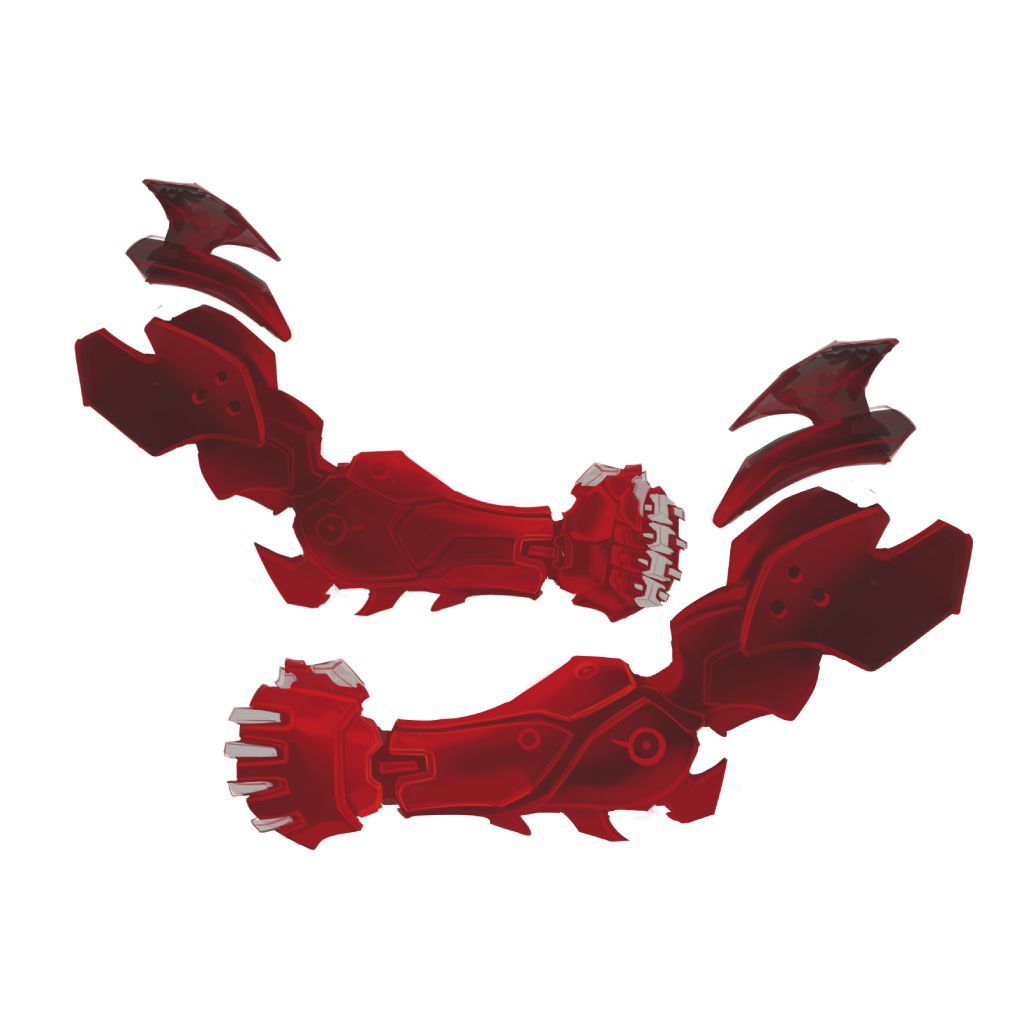 选择了红黑配色体现盘古的威严霸气。他的身体经过机械科技的改造,厚重的铠甲下,是高科技分子材料聚合而成的红色躯体。
