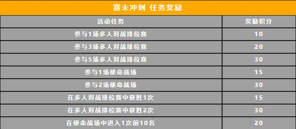 赛末冲刺活动的详细任务与兑换要求,瘦普已经为战士们整理好啦~