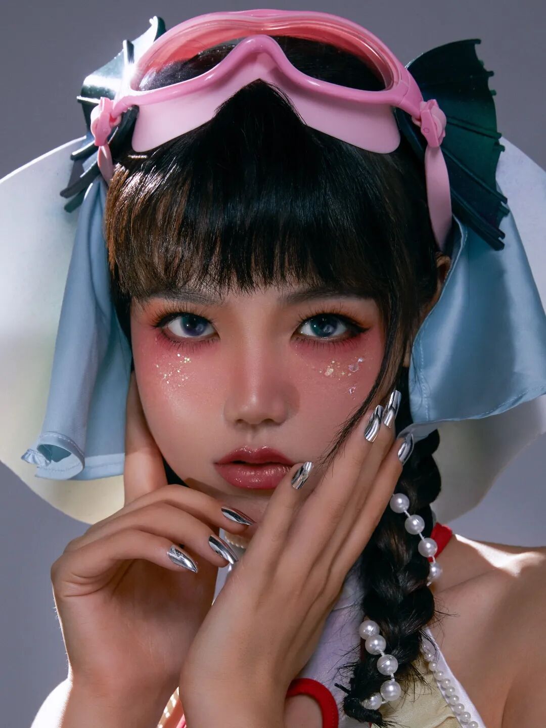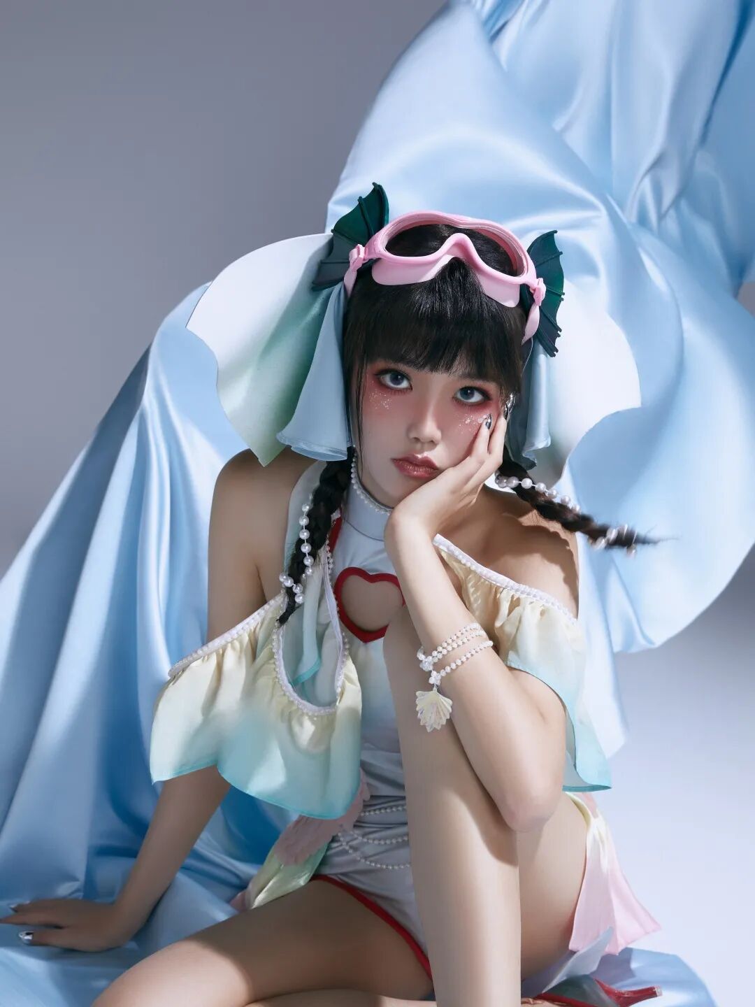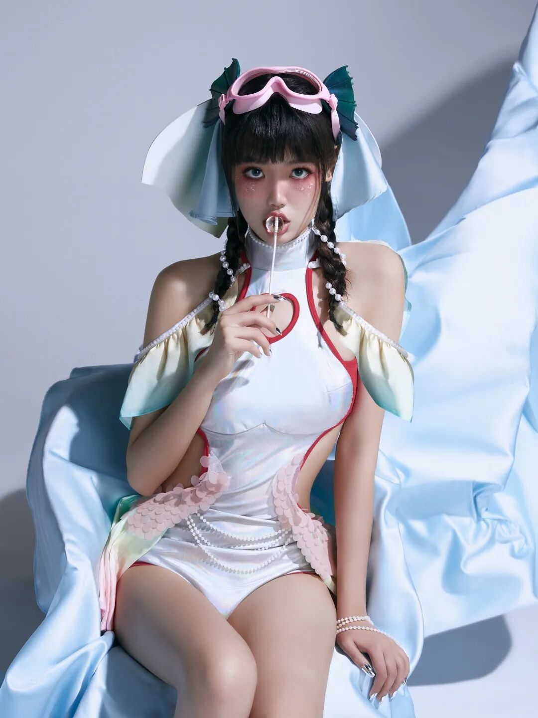 可可爱爱的双马尾,魅力十足的人鱼套装,再加上粉粉嫩嫩的潜水镜,试问哪个特种兵不想自己队里也有这么一个小姐姐呢?
