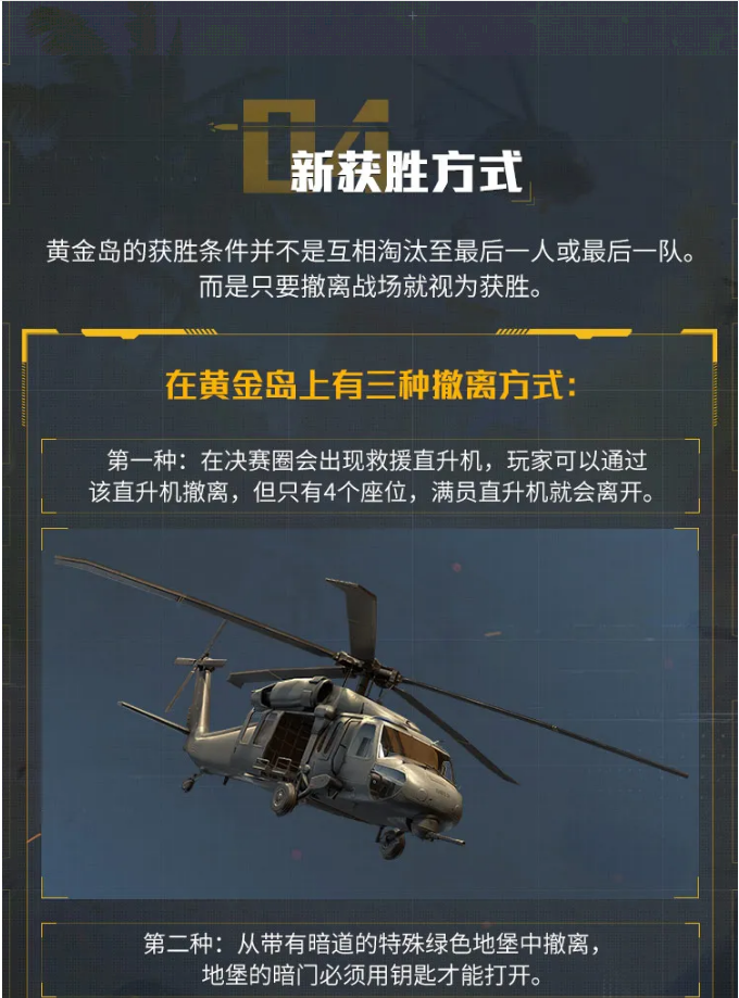 新版本爆料已进入第四弹啦,也就是各位特种兵们最期待的黄金岛的爆料,而鸡仔也早已和小白裙一起抢先体验了黄金岛地图,下面跟着小白裙一起进入惊险、刺激的黄金岛世界吧~