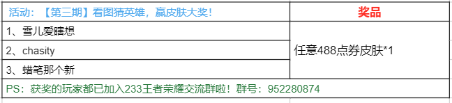 请以上获奖的3位玩家三天内联系QQ:952280874 荣耀小宝料(备注910活动兑奖)进行兑换