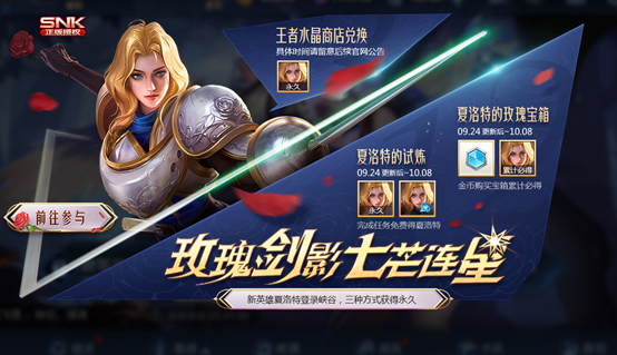 SNK正版授权全新英雄【夏洛特】登场,多种方式获取英雄。