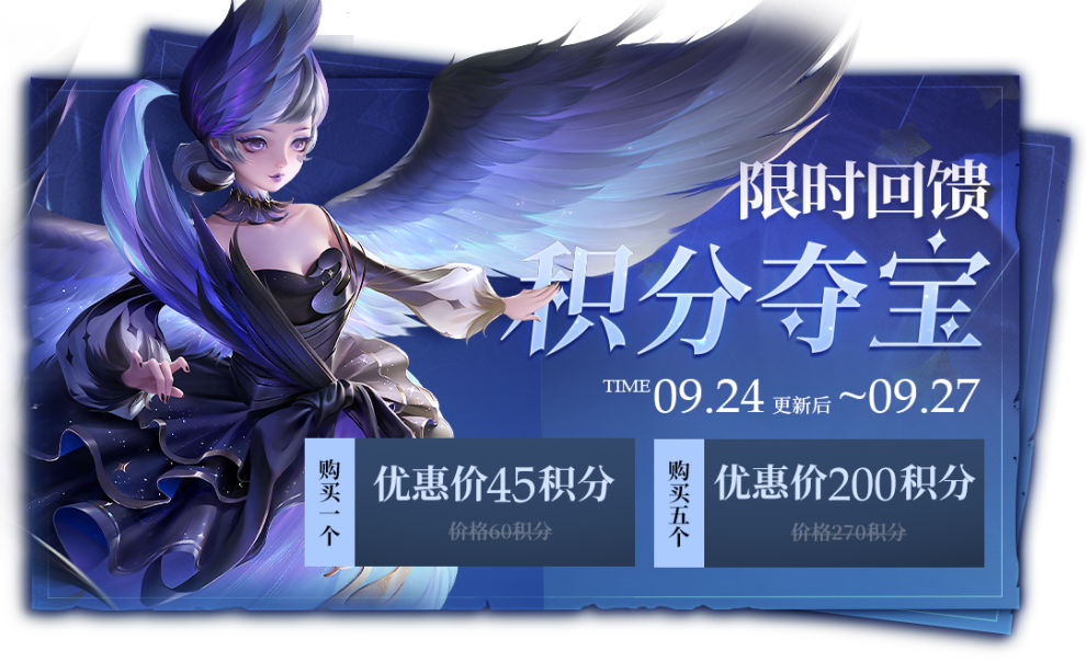 积分夺宝折扣时间:9月24日更新后-9月27日23:59