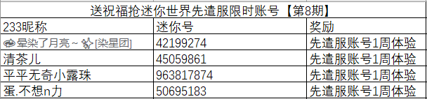 本期体验服账号的有效期是6月7日上午10点-6月15日上午10点,请中奖用户尽快加群领取账号;