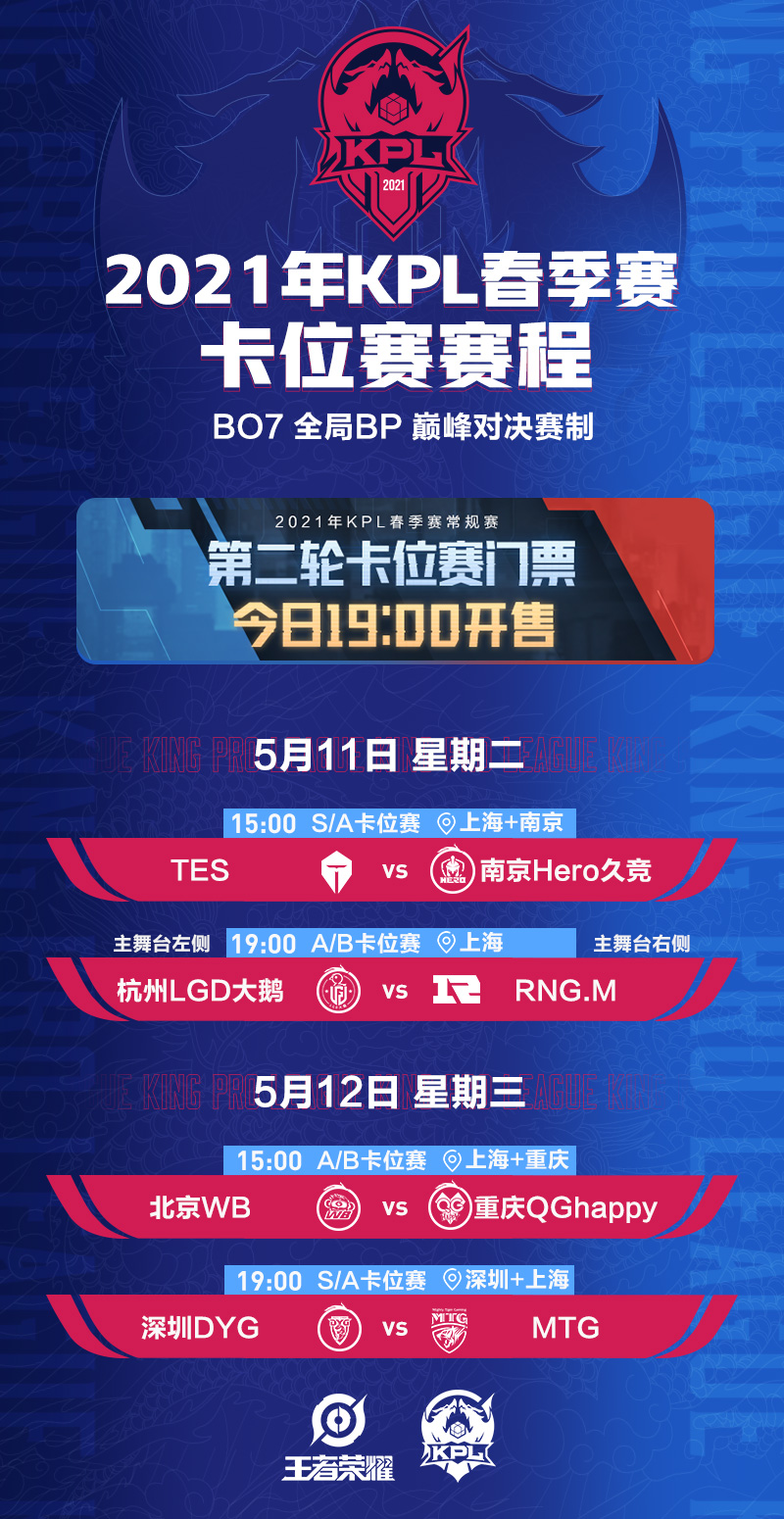 2021KPL春季赛常规赛第二轮卡位赛,今晚19:00开启售票!