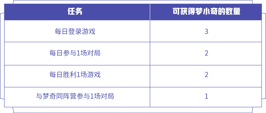 活动规则:参与入梦之灵拼图活动,完成每日任务收集梦小奇可点亮拼图,每次点亮拼图可获得梦奇拼图礼包*1,点亮所有拼图可获得入梦之灵头像框,多余的梦小奇印章可用于抽奖(每次抽奖消耗梦小奇*4,领取最终奖励/活动剩余时间小于3天时抽奖开启),活动结束后所有的梦小奇印章和未领取的奖励都将清空,请记得及时领取、使用