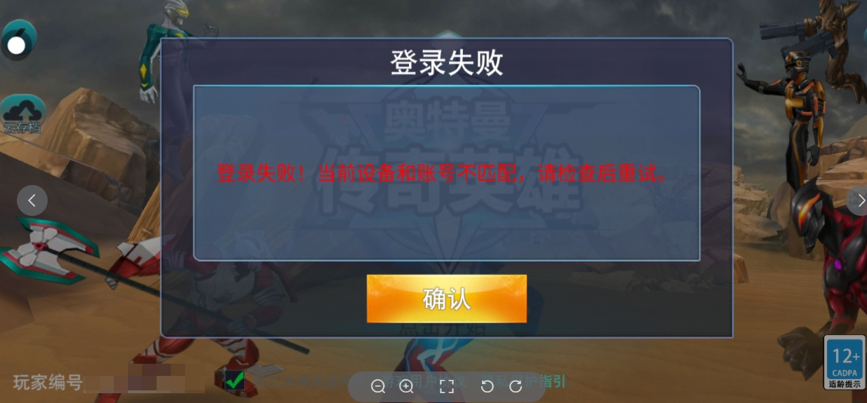 2、游戏内出现“数据异常无法登录”的提示